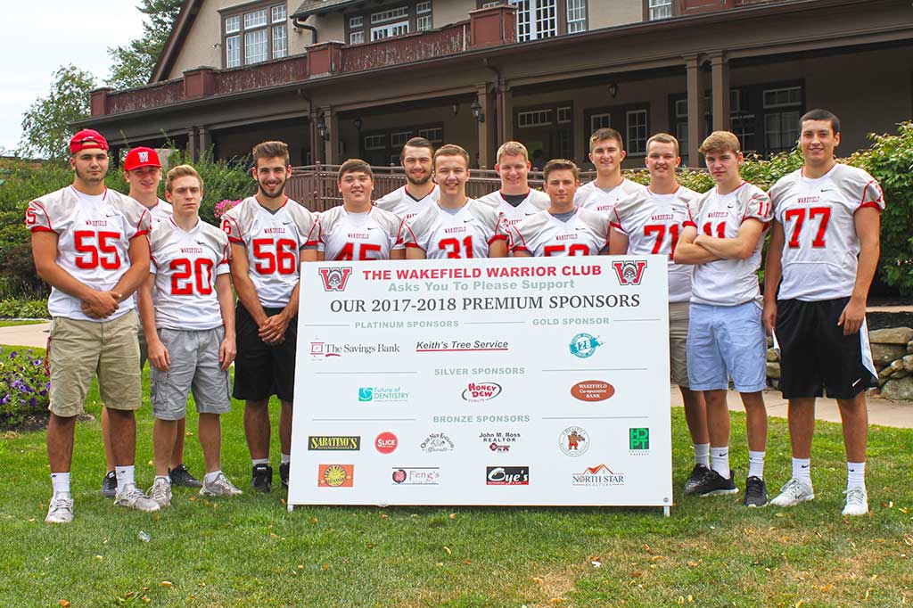 The Wakefield Warrior Club is a 501 C (3) organization supporting the WMHS Football Program. We meet the first Wednesday of every month at 7:30 p.m., in the Community Room at the Public Safety Building. All football parents are welcome to come and participate in our next meeting on September 6.