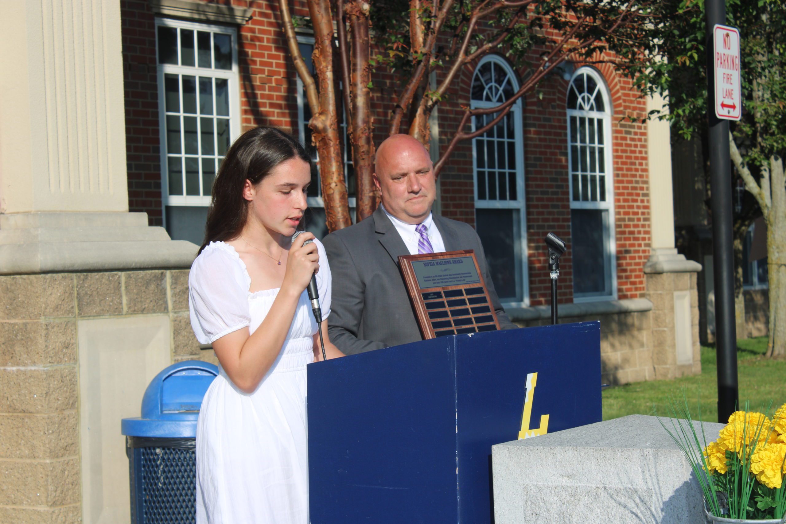 Student Council Secretary Lauren Mattia announced the class gifts. In addition to the traditional plaque that will be put on display in LMS, Lauren said the class gift will be another plaque that will recognize the winners of the newly created Sophia Maglione Award.