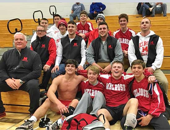 Melrose competed in the Devin Ness Invitational on Saturday, Dec. 1 at Oliver Ames High School. Four wrestlers took the top spots to help Melrose place 8th with 119 points. Winners included newcomer Sean Thomas, who got his first varsity win in the 106 with a 9-7 devision over Mike Crowe of Methuen. His coach spoke of his effort. “He’s a great product of the youth wrestling system and works yard and shows good potential.”