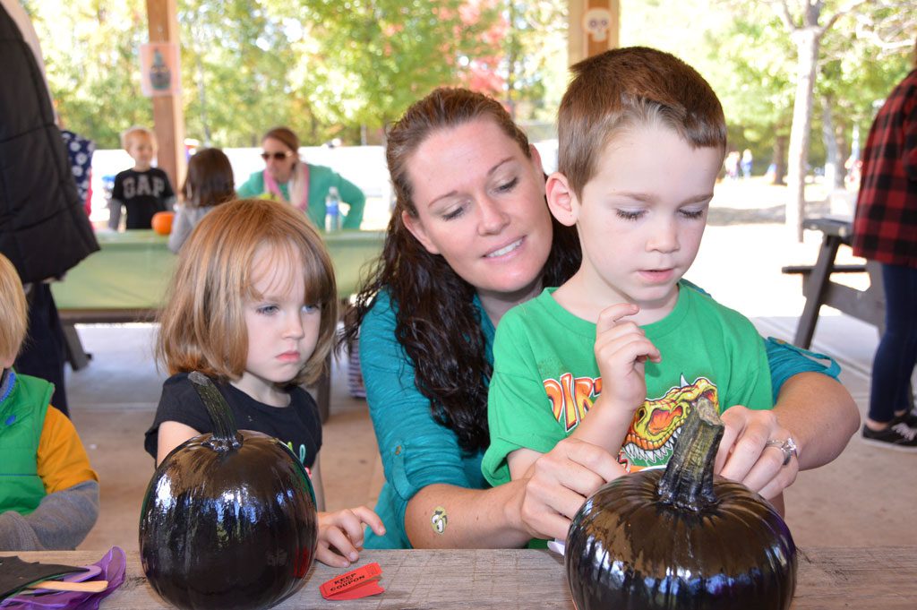 PHOTO: Careful Instruction October 16, 2014 SANDY RUSSELL and her children Kara and Kingston had fun decorating pumpkins for Halloween at Parks and Recreation’s annual Pumpkin Festival at Ipswich River Park. (Bob Turosz Photo)