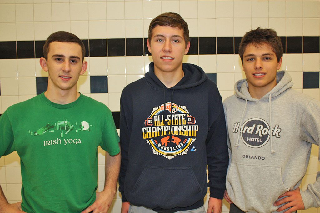 THE Lynnfield-North Reading co-op wrestling team will be led by senior captains, from left, Mike Reardon, Zack Monzione and Max Whyman this winter.(Dan Tomasello Photo)