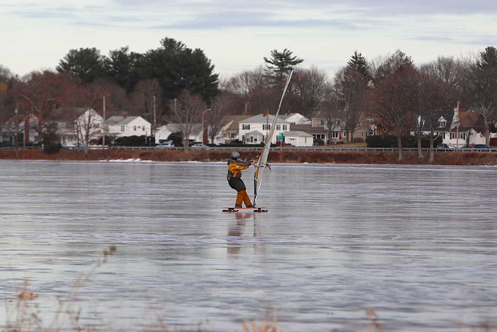 THIS ICE SKATER had plenty of natural power on Lake Quannapowitt over the weekend. (Donna Larsson Photo)