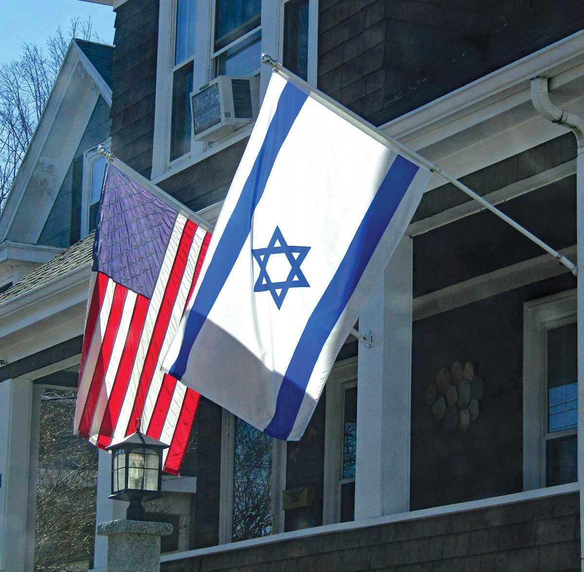 THE United States flag and the Israeli flag are displayed side by side on this home on Pleasant Street. (Mark Sardella Photo)