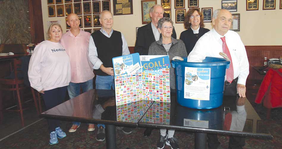 MEMBERS OF WAKEFIELD’S ROTARY CLUB gathered at Brothers Deli & Restaurant on Main Street Wednesday, Feb. 14 for the Dine Anywhere in the World drawing. Vito Vacca, owner of Vito’s Tailor Shop on Albion Street and winner of the 2023 drawing, pulled the winning name—Joseph Martinelli of Lexington. Vacca and his wife went to Italy last year, the place of his birth. From left: Elaine Guaetta, Edward Harding, Thomas Stapleton, James Taylor, Joie Gerrish, Barbara Worley and Vacca. (Gail Lowe Photo)