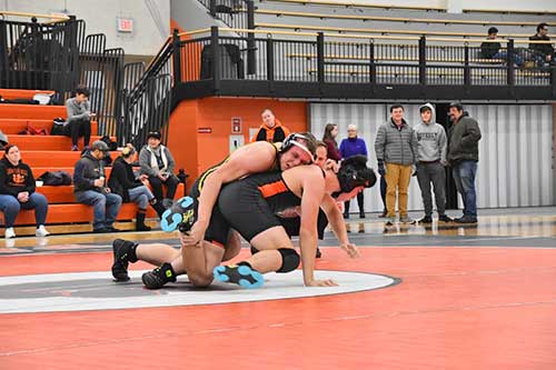 DiPietro defeated his opponent by a 17-14 decision. Marotta (160 lbs.) pinned his counterpart in 3:30. McCullough (182 lbs.) won his match by fall in 1:49. Farrelly pinned his opponent in 20 seconds. Sophomore Greg Camier (285 lbs.) won his match by fall in 1:44. Bedell won his match by forfeit.