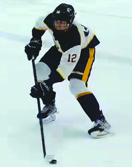 AIDAN NORTON had two goals and an assist in Lynnfield’s 3-0 win over Essex Tech on Saturday at McVann-O’Keefe Rink. The Pioneers host King Philip back at McVann-O’Keefe this Saturday at 12 p.m. (LHS Boys’ Hockey Photo)