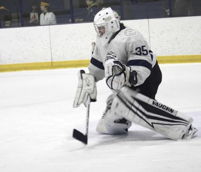 DAN McSWEENEY made 31 saves in a 2-1 win over Winthrop on Dec. 21. (LHS Hockey Photo)