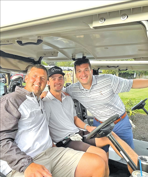HORNET baseball coach Eric Archambault (left), the MIAA Coach of the Year, heads out to the links with Jason Curran and Mike Poudrier. (Courtesy Photo)