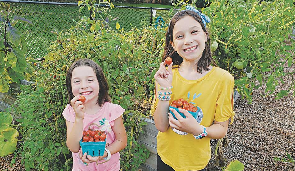 WAKEFIELD GIRL SCOUTS Sydney and Cassie Boettcher harvested cherry tomatoes from the joint Community Garden plot between Junior Troop 82220…