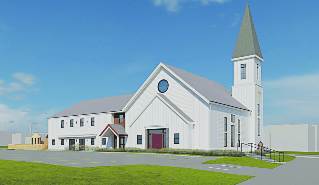 THIS IS A DIGITALIZED rendering of the new First Baptist Church. It will be rebuilt on the 8 Lafayette St.