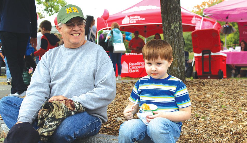 PAPA AND ME. Four-year-old Cade Gaffney takes a break from all the activities at Town Day to enjoy a cup