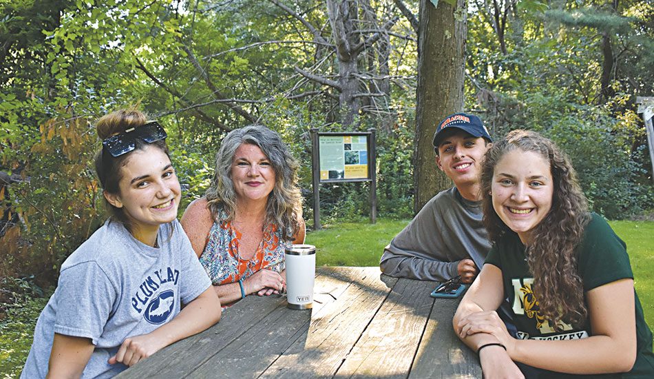 NRHS STUDENTS Lili Acuna (left, foreground) and Tyler Craig and Lindsay Keller (at right) gather around a picnic table to
