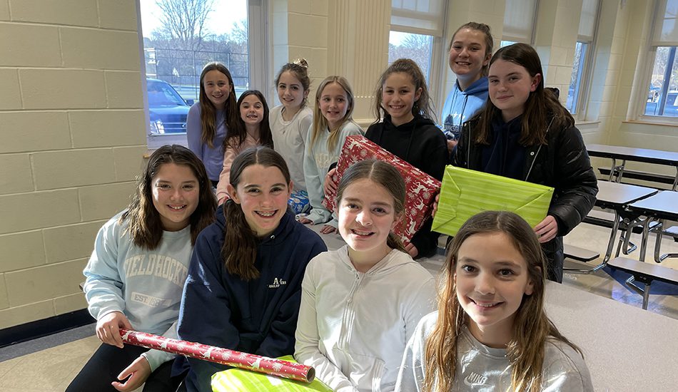LYNNFIELD MIDDLE SCHOOL’S annual Holiday Gift Drive on Dec. 21 featured students wrapping presents for 10 families in need. The