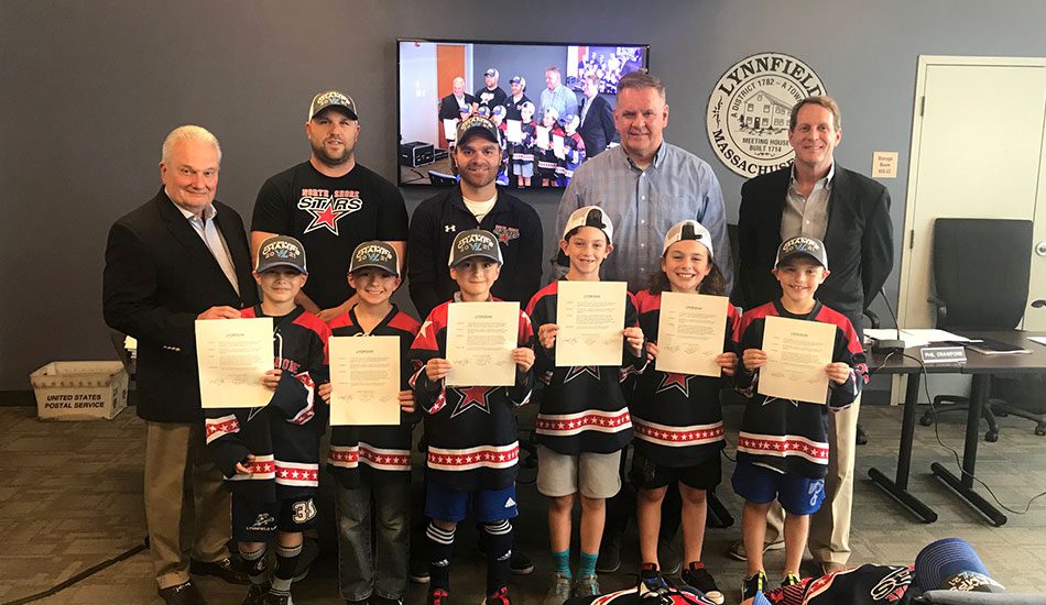 THE SELECT BOARD presented citations to the Mite 1 hockey team during a recent meeting. (Bob Curtin Photo) By