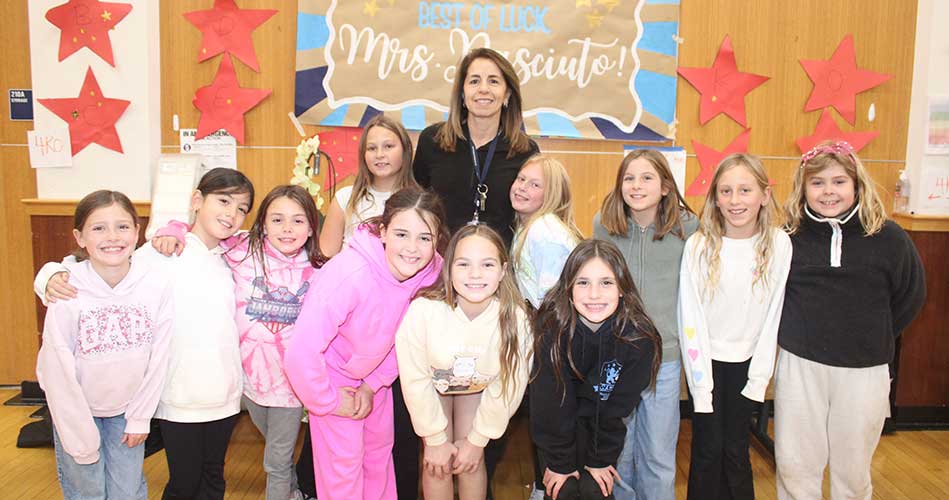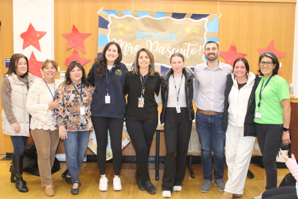 SUMMER STREET SCHOOL kindergarten paraprofessional/Lynnfield Community Schools instructor Lisa Pasciuto (center of back row) was honored during a goodbye celebration