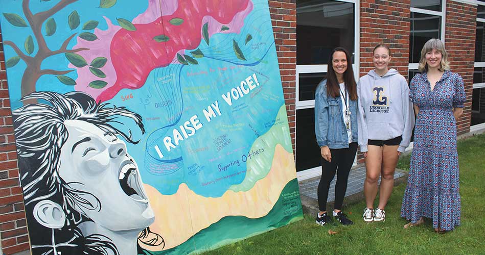 THE NEW MOBILE MURAL spearheaded by A Healthy Lynnfield and the Youth Council at Lynnfield High School is unveiled by,