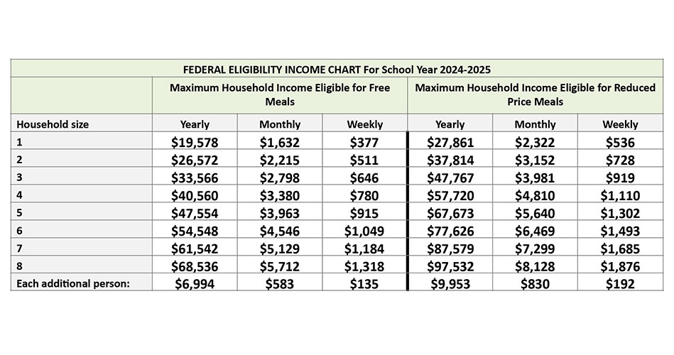 THE FEDERAL INCOME ELIGIBILITY GUIDELINE CHART for school meals. LYNNFIELD — The school system is once again