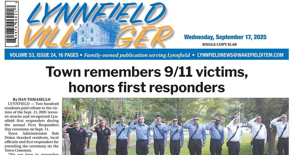 LYNNFIELD FIREFIGHTERS salute the 2,977 people who died during the 9/11 attacks, including 343 New York City firefighters, during the