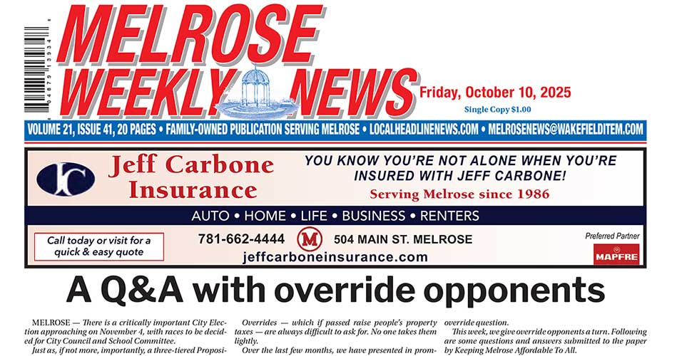 This is from the override advocacy group Yes for Melrose. MELROSE — As the November 4 election day grows near,