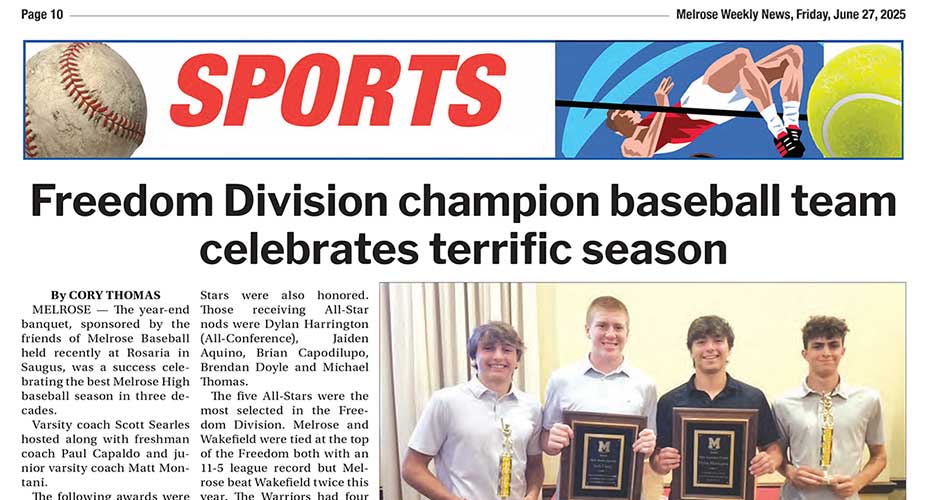 By CORY THOMAS MELROSE — The year-end banquet, sponsored by the friends of Melrose Baseball held recently at Rosaria in Saugus,