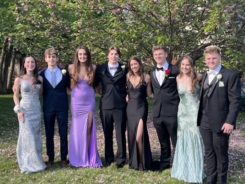 MELROSE HIGH JUNIOR PROM attendees from left: Caroline Ward, Nate Varat, Chloe Gentile, Brendan Morris, Elaine Albuja, Ian Smith, Lily