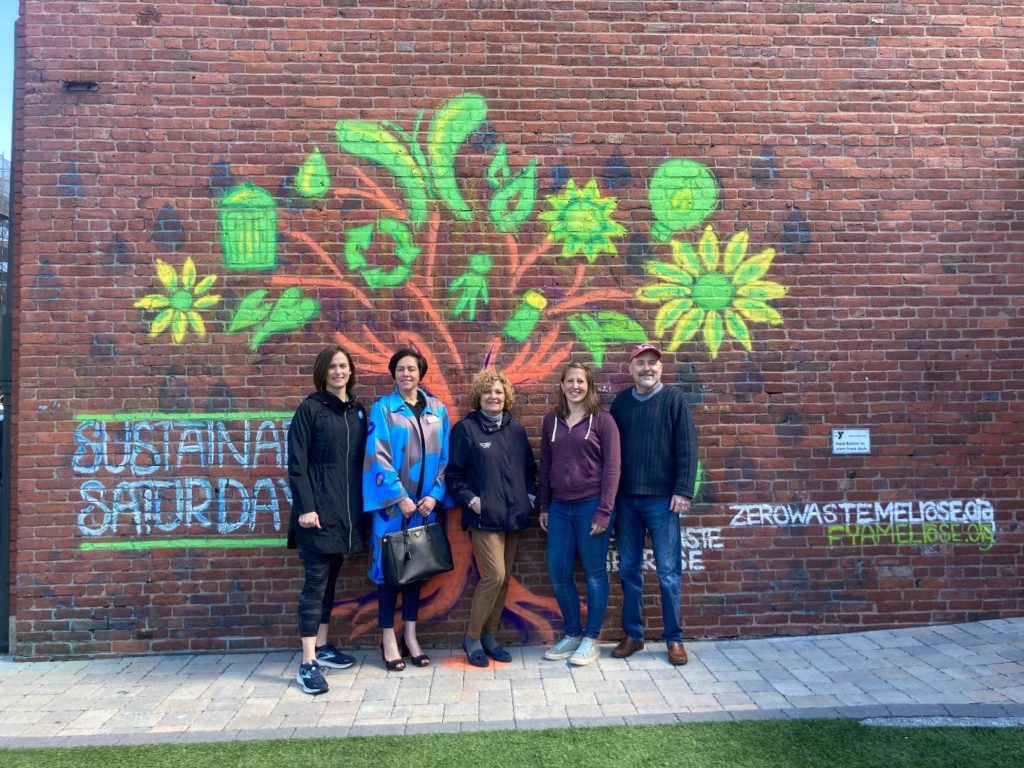 FROM THE LEFT ARE Jeana McNeil, Zero Waste Melrose; Rosylene Forgione, Branch Manager Melrose Eastern Bank; Janet Rivers, Community Relationship