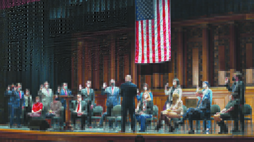 AMONG THOSE newly sworn in by Mayor Paul Brodeur at the 2022 Inaugural Ceremony were newly elected School Committee member