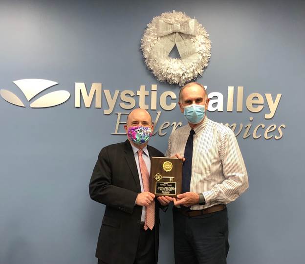 MELROSE — Melrose Mayor Paul Brodeur recently presented a Key to the City to retiring Mystic Valley Elder Services (MVES)