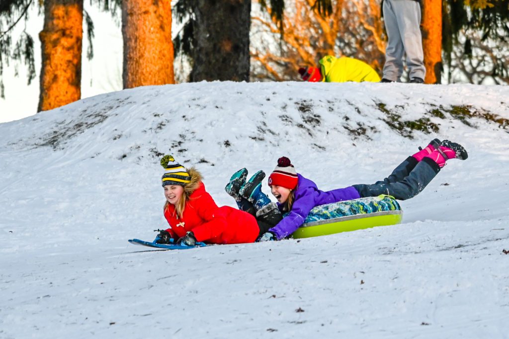 It’s all downhill from here SNOWSTORMS CALL for sledding all day with your friends. (Photo by Raj Das, edphotos.com)