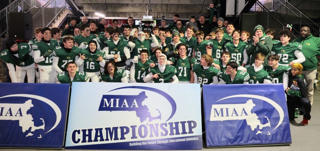 MEET THE 2022 SUPER BOWL CHAMPIONS! The elated North Reading High School varsity football team celebrates winning the school’s first