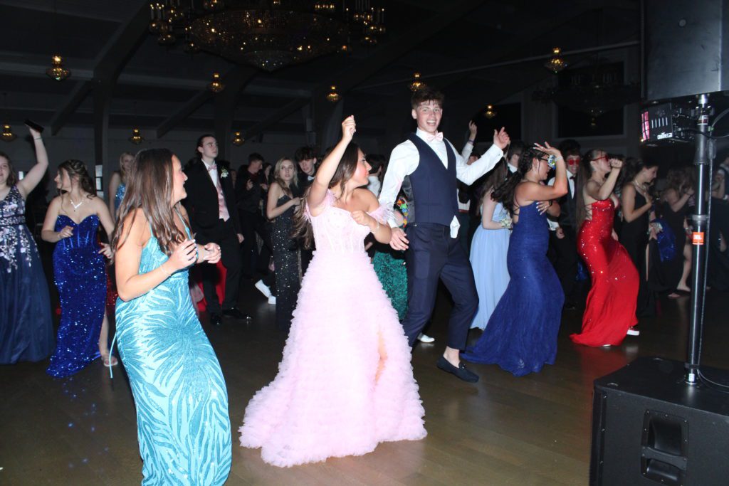 SENIOR MATT GUIDEBECK (center) took the lead during the line dancing that made a brief comeback at the NRHS Senior