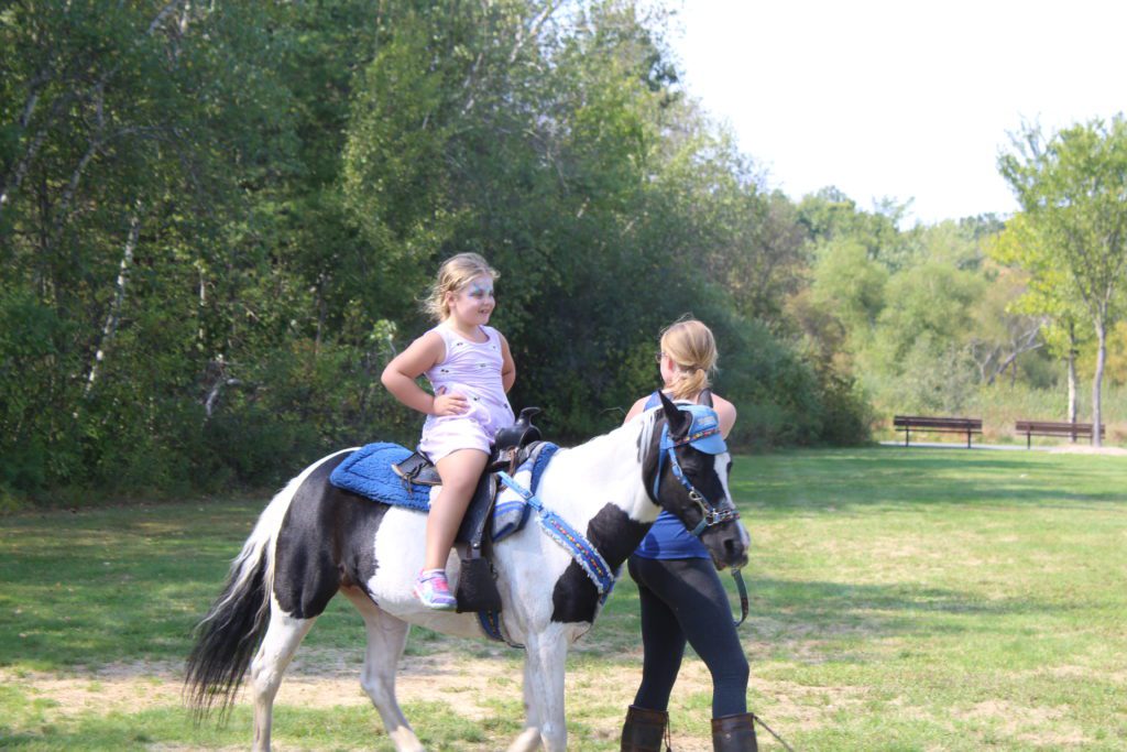 Abigail Thorn, 7, demonstrates the self-confidence of a seasoned equestrian by taking her hands of the reins on her pony