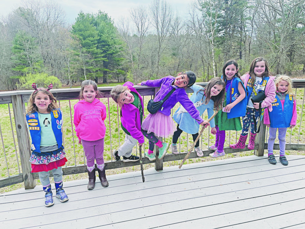 DAISY TROOP 64392 ended April activities with a hike around the Mattera Conservation area in Reading. The troop members are