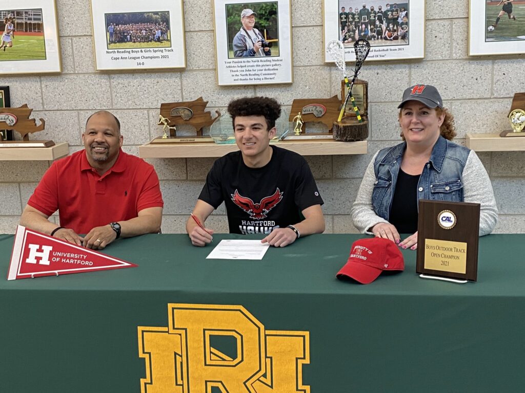 Spencer Beane signed his National Letter of Intent to the University of Hartford track and field program recently, surrounded by