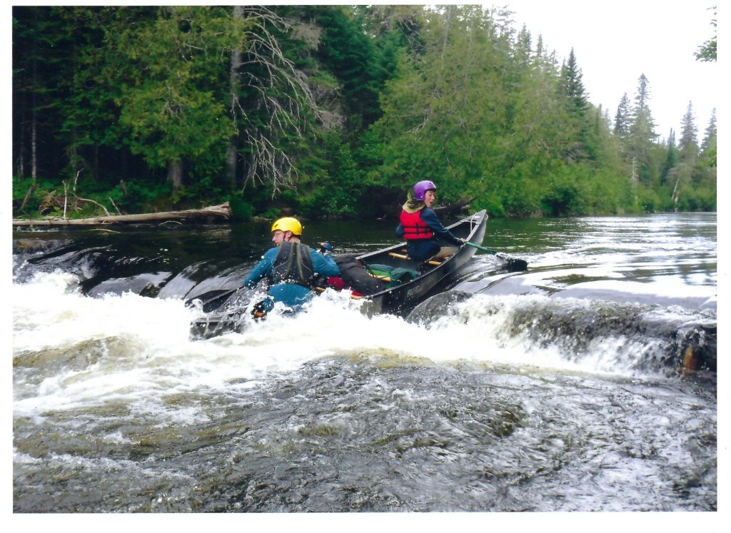 TROOP 750 EAGLE SCOUT Max Barrette (foreground) finds a new way to navigate this Class II rapid on the Allagash