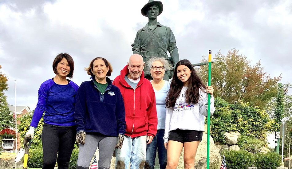The Wakefield Center Neighborhood Association planted 800 tulip bulbs donated by Capone Landscape on the downtown Rockery on Saturday. Left