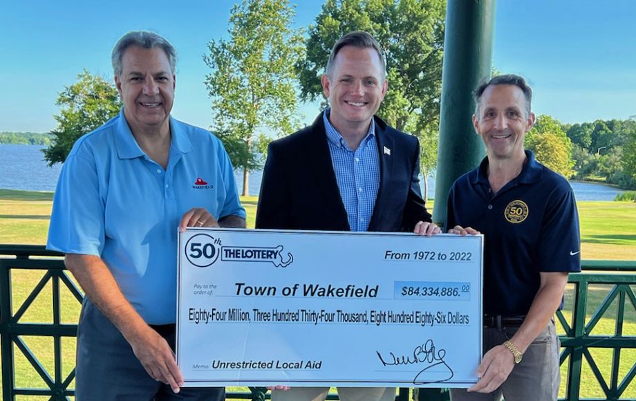 MASSACHUSETTS STATE LOTTERY Communications Director Christian Tejas (right) was in town last week to celebrate the Lottery’s 50th anniversary by