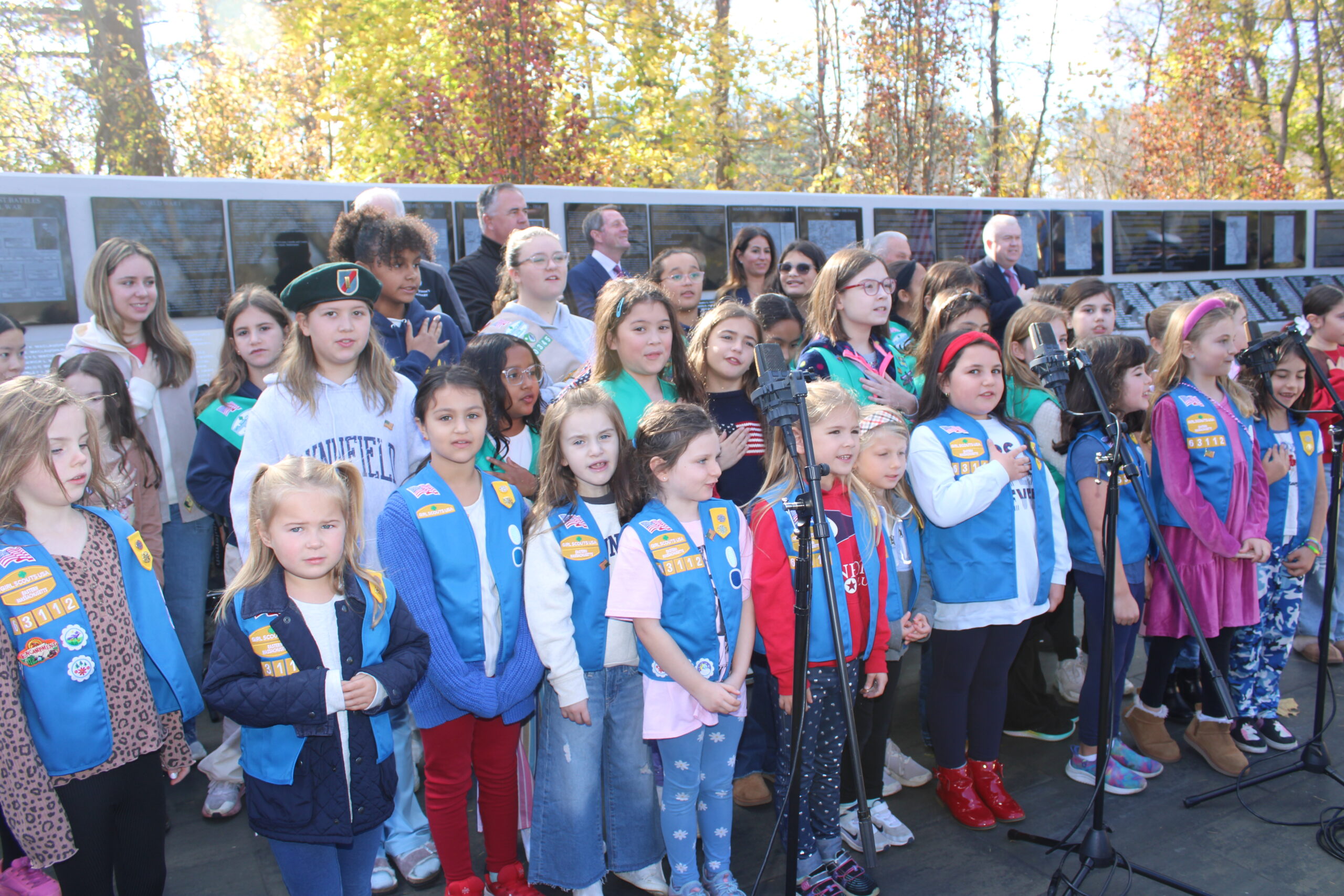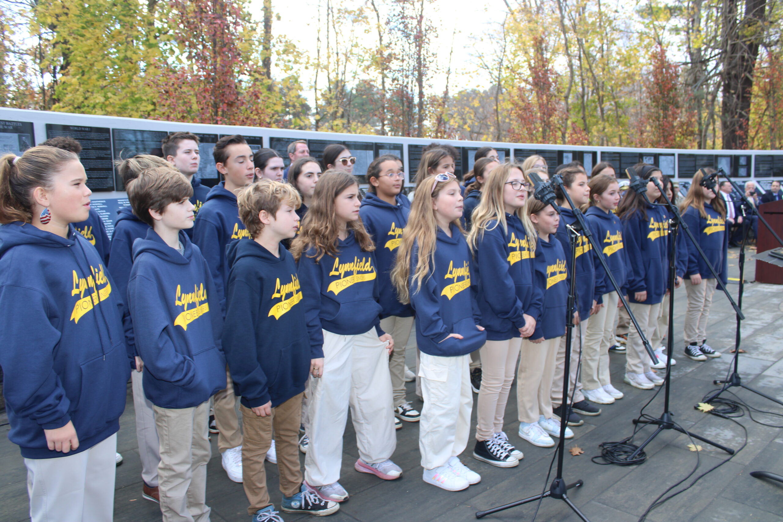 The Lynnfield Middle School Pioneer Singers sang a moving rendition of “America the Beautiful.” The ceremony’s attendees gave the Pioneer Singers a round of applause.