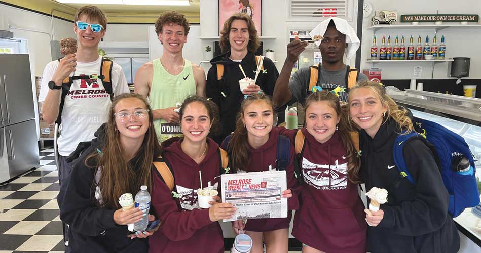 Cool runners June 20, 2024 MEMBERS OF THE Melrose High outdoor track teams competed last weekend at the Nike Outdoor National Championship in Eugene, Oregon. They brought a Weekly News with them when they stopped for some ice cream.