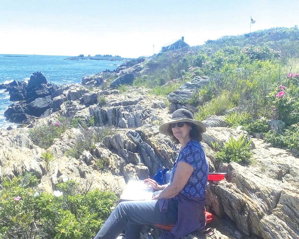 ARTIST Elena Cronin paints a classic seascape on location along the rocky coast of Maine in watercolor, her preferred medium. The North Reading resident is among 43 juried artists whose work will be on exhibit at the Melrose Arts Festival April 27-28. See story inside today’s Transcript. (Courtesy Photo)