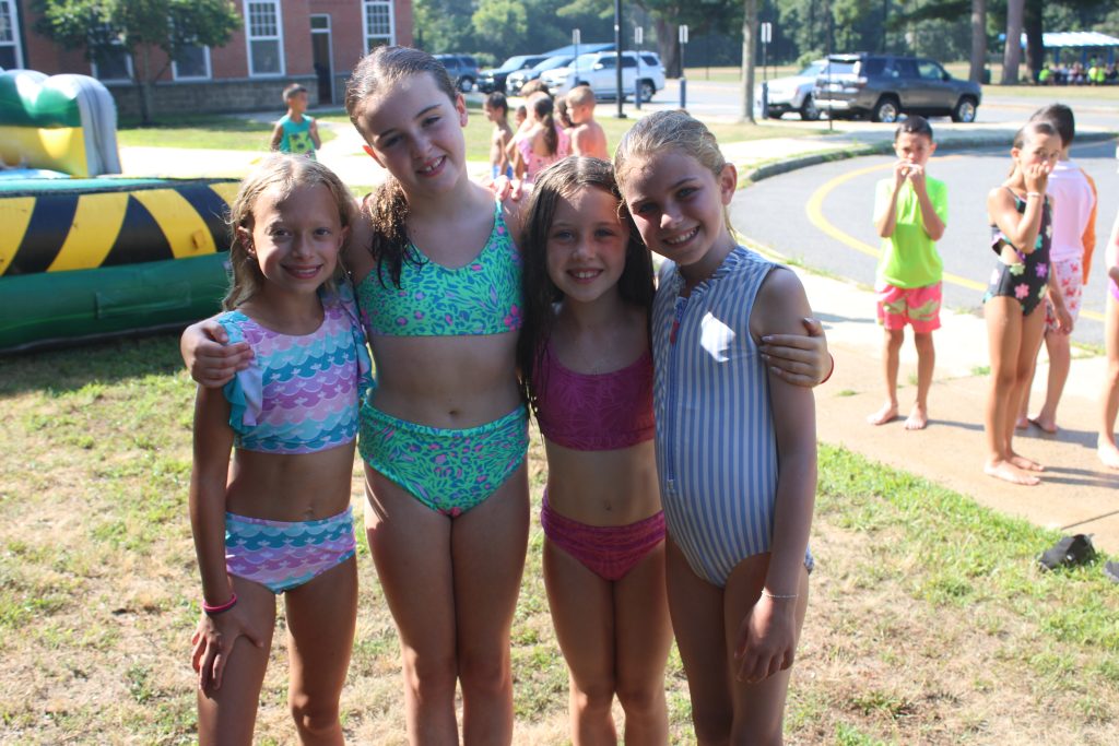 CAMPERS, from left, Mia Crawford, Mikayla Pagliuca, Ava LaBonte and Kenzie Schedin take a break from sliding down the inflatable waterslide at Recreation Station on July 29. (Dan Tomasello Photo)