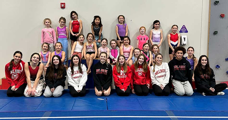 THE MELROSE High gymnastics team hosted their 1st Annual Shop & Drop Gymnastics Clinic for busy caregivers looking to get some last minute shopping done while their little ones practiced their budding gymnastics skills. Here participants gathered with varsity team members. It was a great success and all proceeds benefitted the MHS gymnastics program for critical items such as competition leotards. The team opens their season on January 5 at home against Arlington. See more in our next edition!