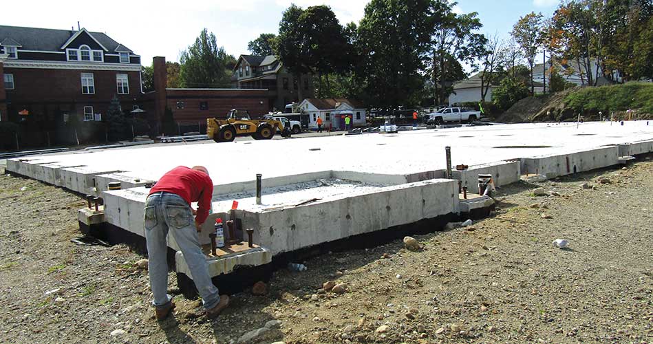 THE CONCRETE slab for the new First Baptist Church has been laid at the corner of Common and Lafayette Streets. (Mark Sardella Photo)