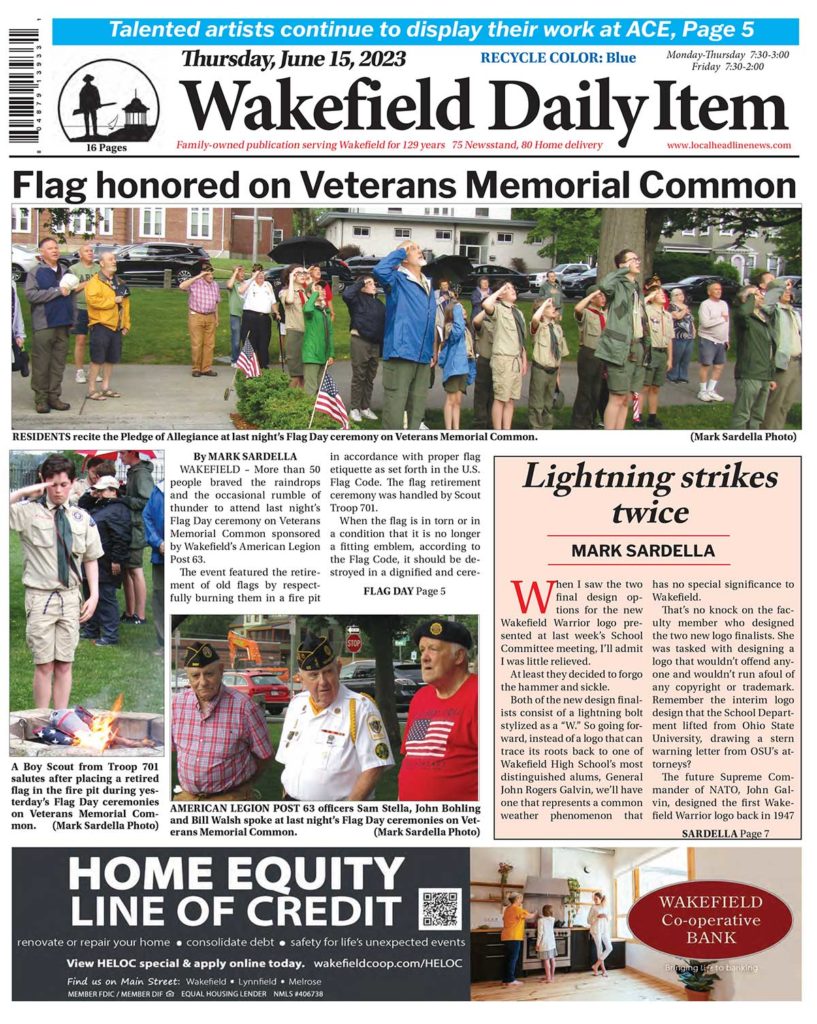Front Page: Wakefield Daily Item, June 15, 2023