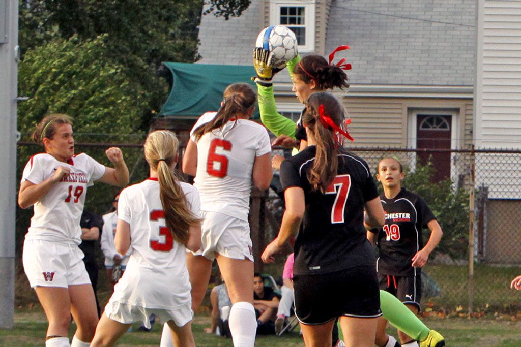 The pressure finally paid off with a header from Meghan Chapman that found its way to the back of the net for a goal to give Wakefield a 1-0 lead.