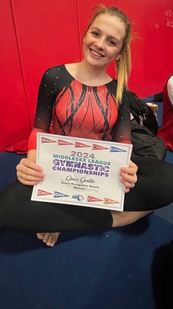 Should they not qualify, Melrose will wrap up their medal winning season, and say goodbye to just one senior, captain Grace Gentile. Says the coach, “I was so happy with Grace’s performance at meets. It was her last competition and she made it one of her best!”
