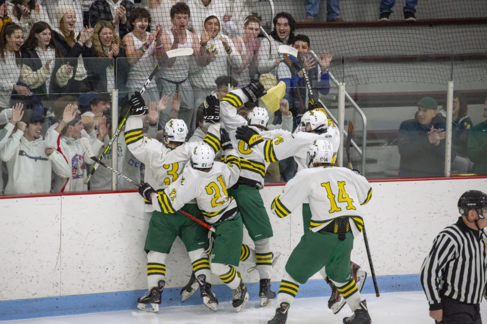 Several days prior in the tournament preliminary round, the Hornets fought off a stubborn Triton club, 3-1, to advance. Midway through the first period, Luke Baker fired home his first goal of the season to claim a 1-0 lead.