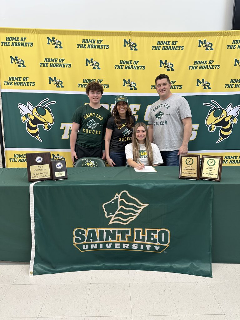 Hornet of the Week: Marisa Montana April 24, 2025 Published in the April 24, 2025 edition Montana recently signed her National Letter of Intent to the Saint Leo University soccer team surrounded by family, friends, teachers and coaches at NRHS. (Courtesy Photo)