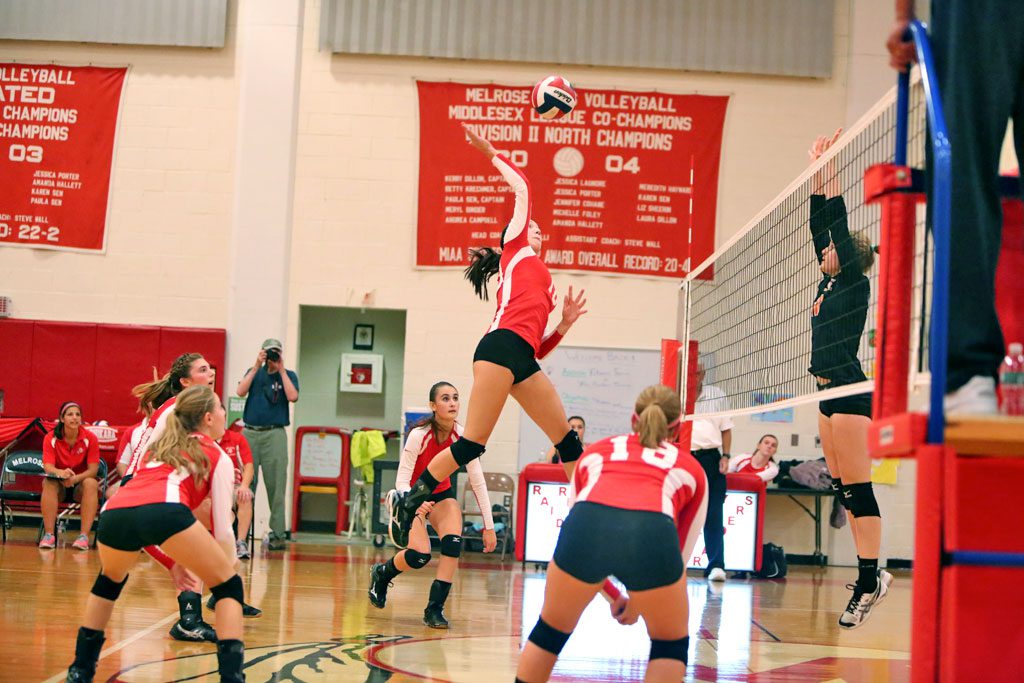MELROSE — The Melrose Lady Raider volleyball team continues to enjoy a near-perfect season as they pass the midway point of the season poised to take another Middlesex League crown. They remain undefeated in Middlesex League, after beating a tough Lexington squad on Monday at the Melrose Middle School gym, in a 3-1 victory in sets of 25-17, 25-17, 22-25 and 25-19. The win improves Melrose to 13-1 overall and 10-0 in the league.