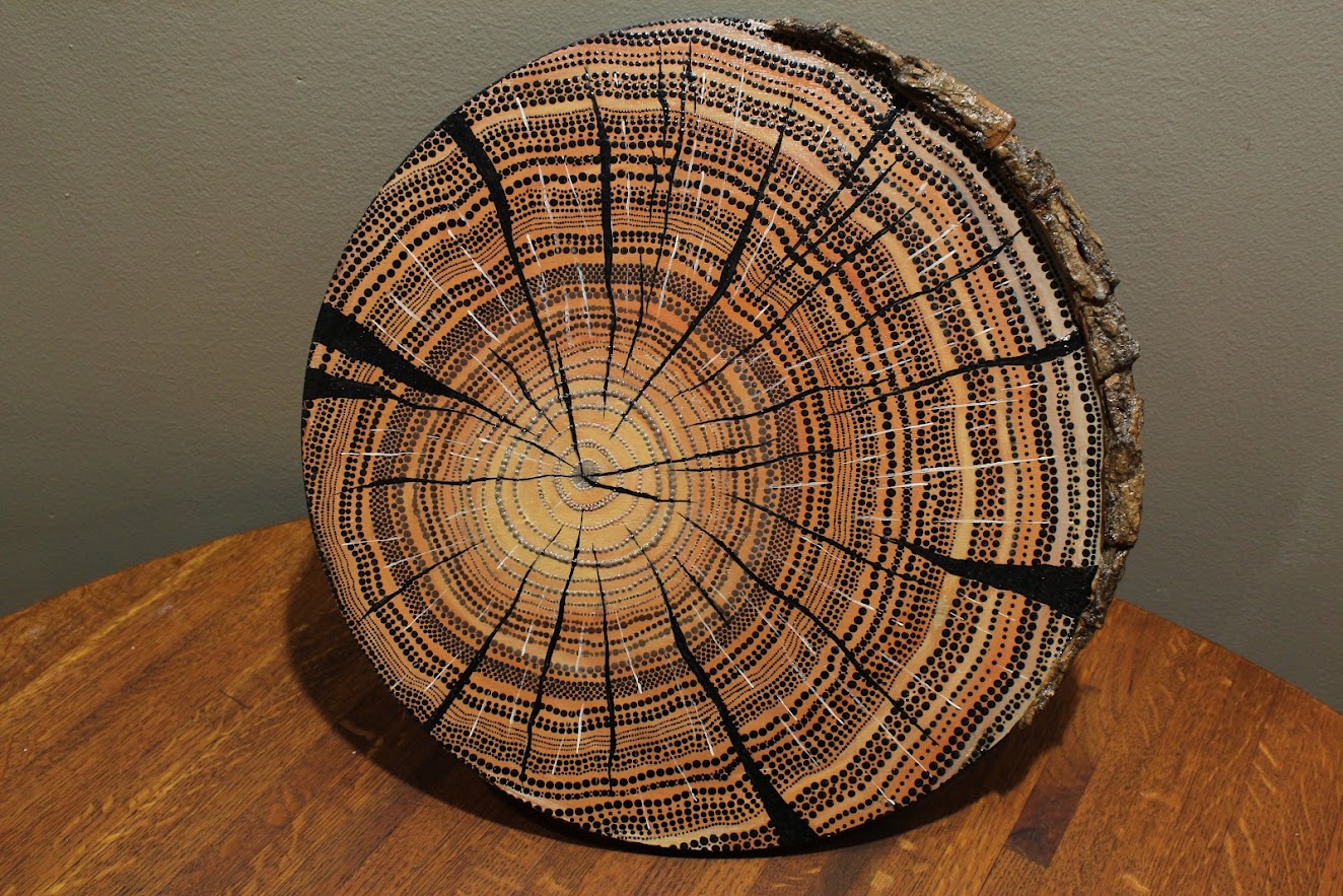 “My love of mandalas started about 20 years ago when I started drawing symmetrical designs to rediscover my life-long love of art,” said Newman. “When my children were young, we would collect rocks at the beach and my designs moved from paper to rocks to glass and have progressed to painting on any surface. Painting mandalas brings me peace and positive energy, which I intentionally pour into every piece of art I create. I also incorporate wood carving or wood burning into some of my designs and especially like to honor my Irish heritage and include carved Celtic knots in many of my designs. My idea to paint mandalas originally comes from seeing the Tibetan monks sand ritual and Native American designs.”